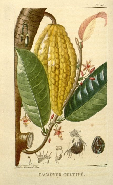 Prints Fig. 1 "Theobroma cacao L." Flora Brasiliensis, vol. 12(3): fasicle 96, t. 16, Martius, C., Eichler, A. G., Urban, I., Missouri Botanical Garden, St. Louis, U.S.A., 1886, Plant Illustrations, plantillustrations.org. Accessed 27 Apr. 2015. Fig. 2 Vietz, F. B. "Theobroma cacao L." Icones plantarum medico-oeconomico-technologicarum, vol. 1: t. 35, Vietz, F. B., Missouri Botanical Garden, St. Louis, U.S.A., 1800, Plant Illustrations, plantillustrations.org. Accessed 27 Apr. 2015. Fig. 3 Descourtilz, J. T. "Theobroma cacao L." Flore médicale des Antilles, vol. 4: t. 266, Descourtilz, M. E., Missouri Botanical Garden, St. Louis, U.S.A., 1827, Plant Illustrations, plantillustrations.org. Accessed 27 Apr. 2015. Fig. 4 "Theobroma cacao L." Medizinal Pflanzen, vol. 2: t. 1572, Köhler, F. E., Missouri Botanical Garden, St. Louis, U.S.A., 1890, Plant Illustrations, plantillustrations.org. Accessed 27 Apr. 2015. Fig. 5 "Theobroma cacao L." Koehler, F.E., Medizinal Pflanzen, vol. 2: t. 1571. Missouri Botanical Garden, St. Louis, U.S.A., 1890, Plant Illustrations, plantillustrations.org. Accessed 27 Apr. 2015. Fig. 6 "Theobroma cacao L." Afbeeldingen der artseny-gewassen met derzelver Nederduitsche en Latynsche beschryvingen, vol. 4: t. 392, Zorn, J., Oskamp, D. L., 1800, Plant Illustrations, plantillustrations.org. Accessed 27 Apr. 2015. Fig. 7 Mucha, Alphons. "Advertising poster for Chocolat Idéal." Wikimedia Commons, c.1860, Public Domain, commons.wikimedia.org. Accessed 14 June 2017. Fig. 8 "Immigrant workers from India relaxing on a cacao estate in Trinidad." Wikipedia, 1902, Public domain, wikipedia.org. Accessed 14 June 2017. Fig. 9 Renoir, Pierre Auguste. "La Tasse de chocolat." Renoir au XXe siècle : catalogue de l'exposition à Paris, Galeries Nationales (Grand Palais, Champs-Élysées), 2009, Philadelphia Museum of Art, 2010, p. 121, c. 1912, Public Domain, {{PD-US-expired}}, commons.wikimedia.org. Accessed 14 June 2017. Fig. 10 Meléndez, Luis Egidio. "Bodegón con servicio de chocolate. Still Life with Chocolate Service." Museo del Prado, 1769, Wikimedia Commons, Public Domain, {{PD-US-expired}}, commons.wikimedia.org. Accessed 14 June 2017. Fig. 11 "Ephemera collection: QT (Drink) Die-cut leaflet advertising Bournvelle cocoa." Ca. Cadbury Ltd., Bournville, General Collections, 1909, (CC BY 4.0), Wikimedia Commons, commons.wikimedia.org. Accessed 14 June 2017. Fig. 12 Dodge, Mary Mapes. "St. Nicholas advertisements 51." Internet Archive Book Images, 1830-1905, Wikimedia Commons, commons.wikimedia.org/wiki/File:St._Nicholas_(serial)_(1915)_(14784441502).jpg. Accessed 12 Jan. 2026. Published 27 Apr. 2015 LR. Last update 12 Jan. 2026 LR |